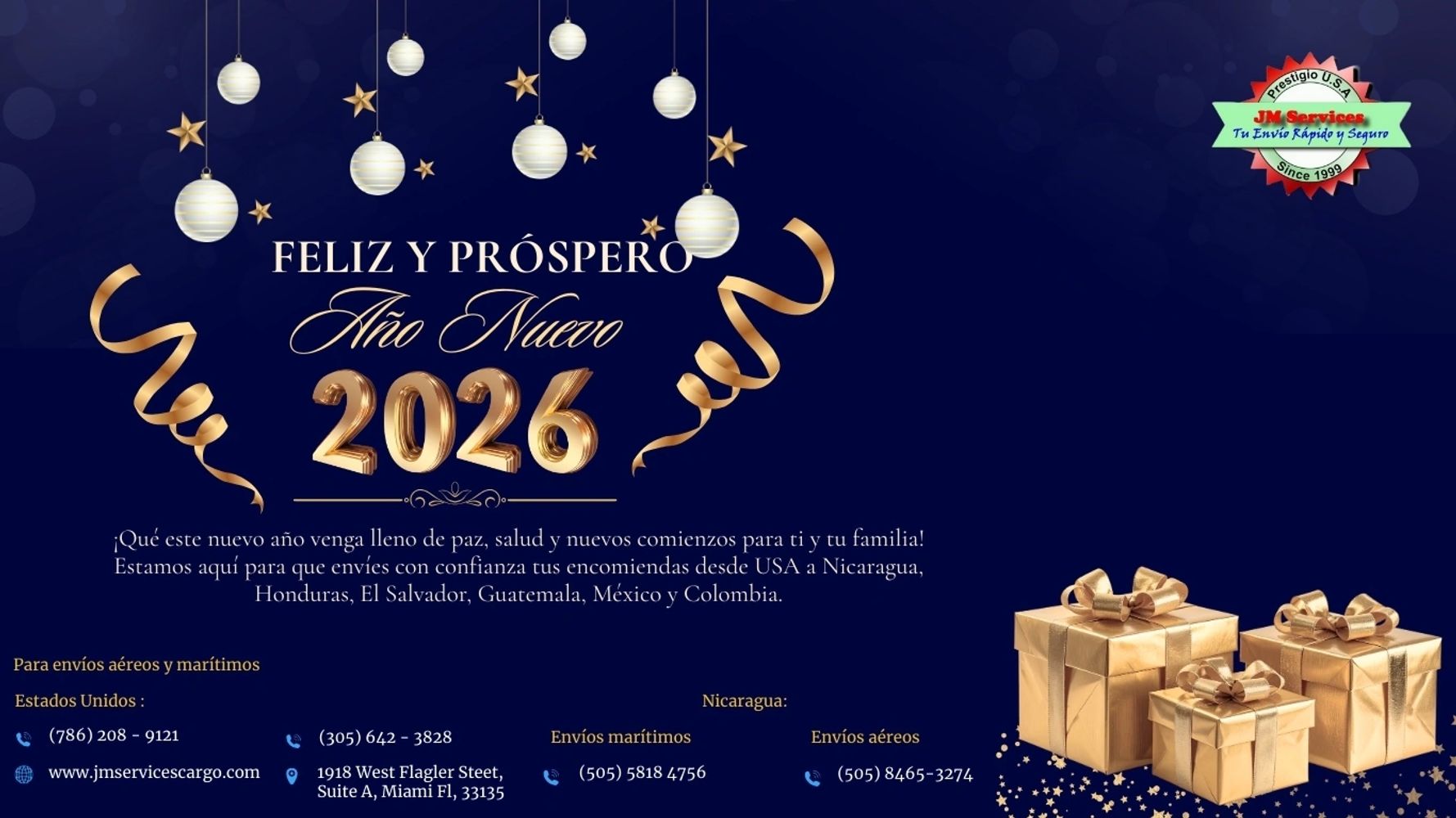Bienvenido a JM Services Cargo, subsidiaria de Rplatitude inc, es una compañía de carga (A shipping Company), fundada y registrada bajos los Estatus Corporativos y legales del Estado de la Florida, USA. Con su oficina principal en 1918 West Flagler St, Suite A, Miami, fl 33135. Nos dedicamos al envío de todo tipo de encomiendas desde Estados Unidos a Nicaragua, Honduras, Guatemala, El Salvador, México y Colombia. Nuestro método maestro es la ENTREGA PUERTA A PUERTA, esto significa que nosotros colectamos su carga, la preparamos, la embarcamos, desaduanamos y entregamos en las manos.